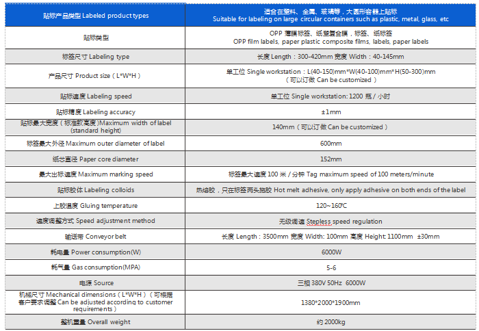 1. This model is suitable for applying OPP film, pearl film, and other circumferential labeling on circular bottle bodies with larger diameters.
